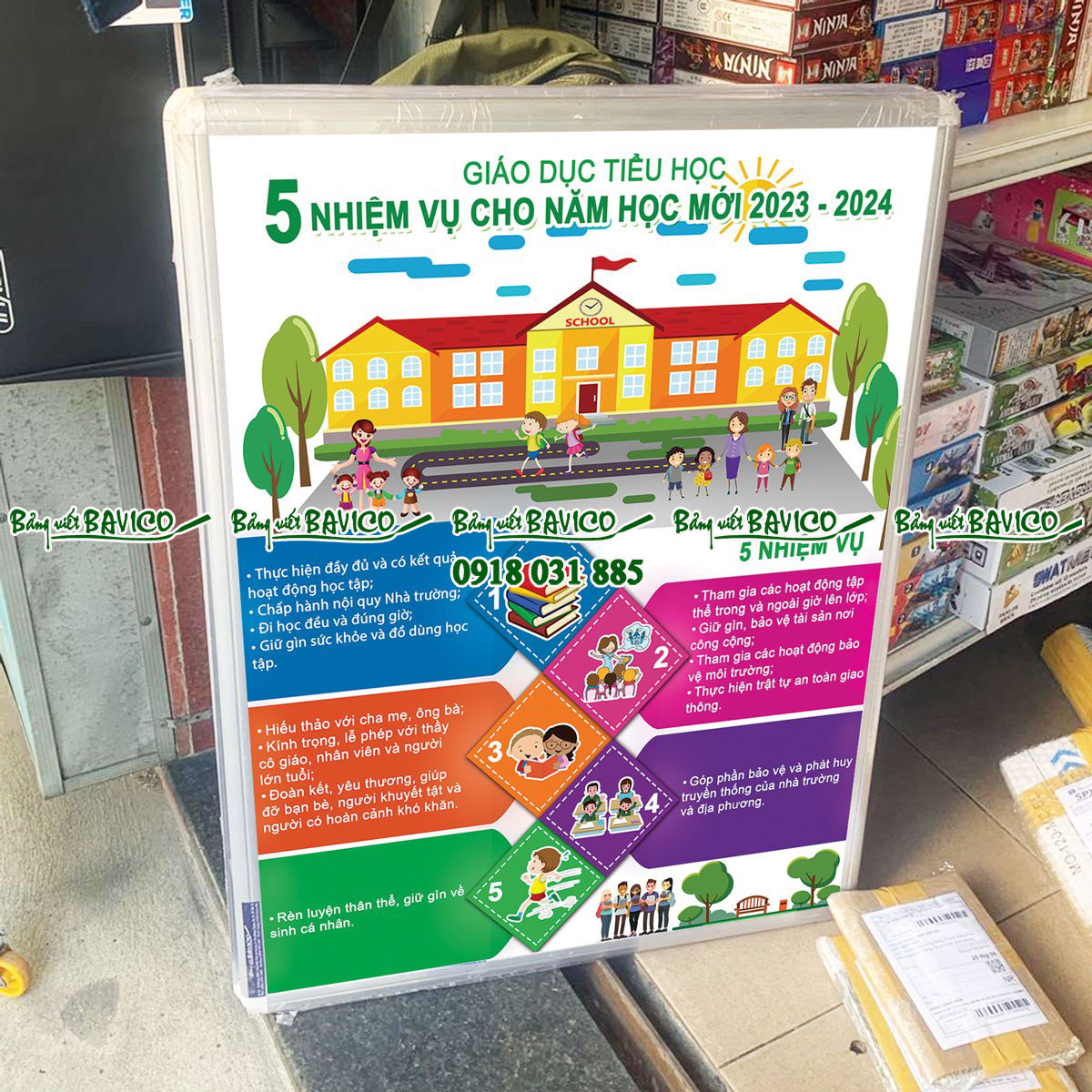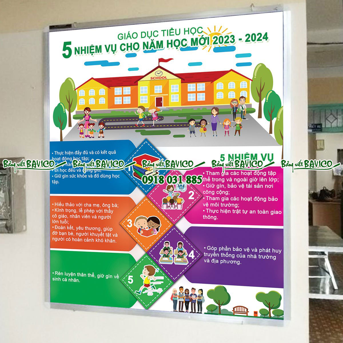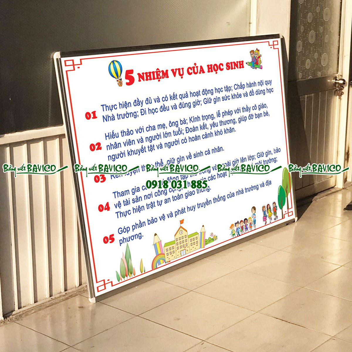 Bảng 5 nhiệm vụ của học sinh được thế kế và sản xuất tại công ty Bavico với giá thành rẻ tận xưởng và sản phẩm đạt chất lượng cao. Là đơn vị chuyên cung cấp bảng cho các trường học trên cả nước – thương hiệu bảng viết uy tín hàng đầu Việt Nam.