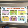 2/ Tấm lót bảng biểu in pp trường học được lót bằng ván MDF 4ly của Thái Lan, mặt sau có ép giấy vân gỗ chống ẩm, chống cong mo.