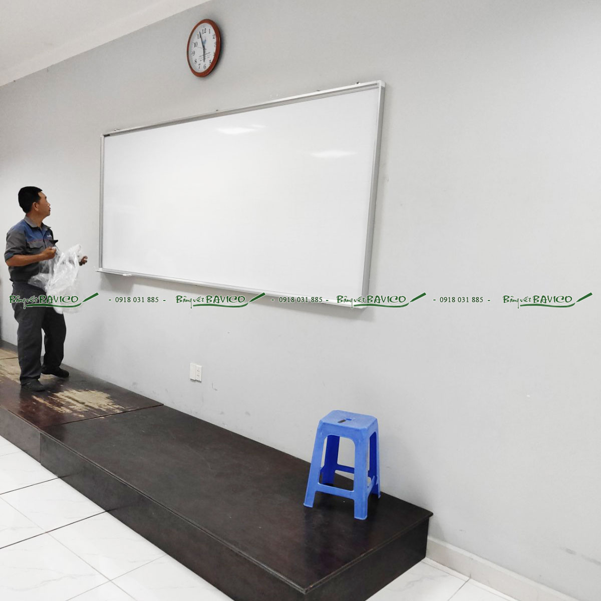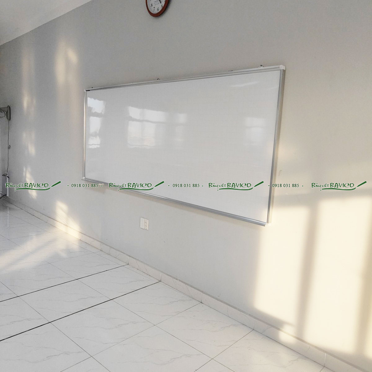 Mặt bảng từ màu trắng chống lóa, chống mài mòn, trơn trượt, viết êm, lau dễ dàng mà không để lại dấu, dày 3 dem.