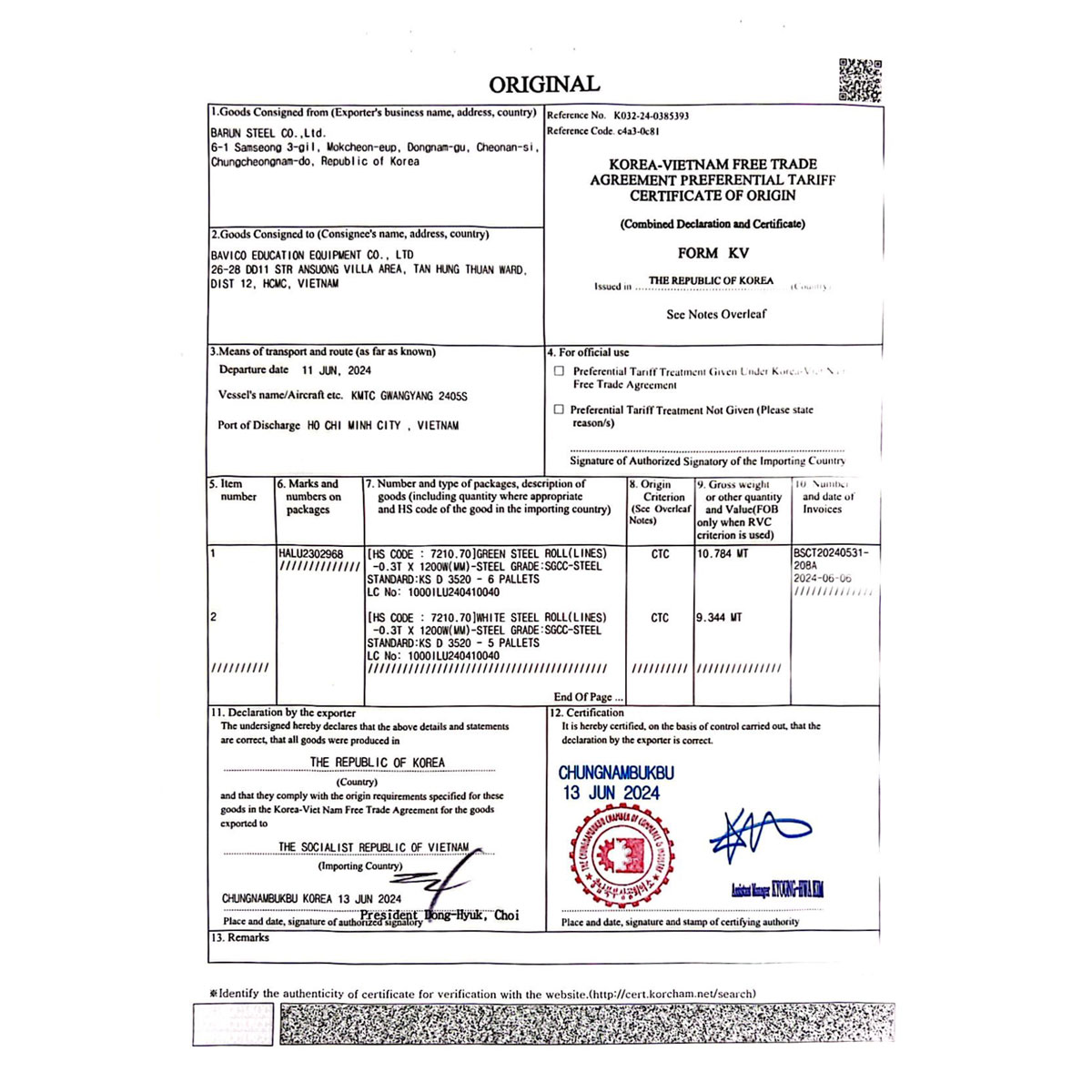 CHỨNG NHẬN CO-CQ NHẬP KHẨU MẶT BẢNG VIẾT BÚT LÔNG TỪ HÀN QUỐC