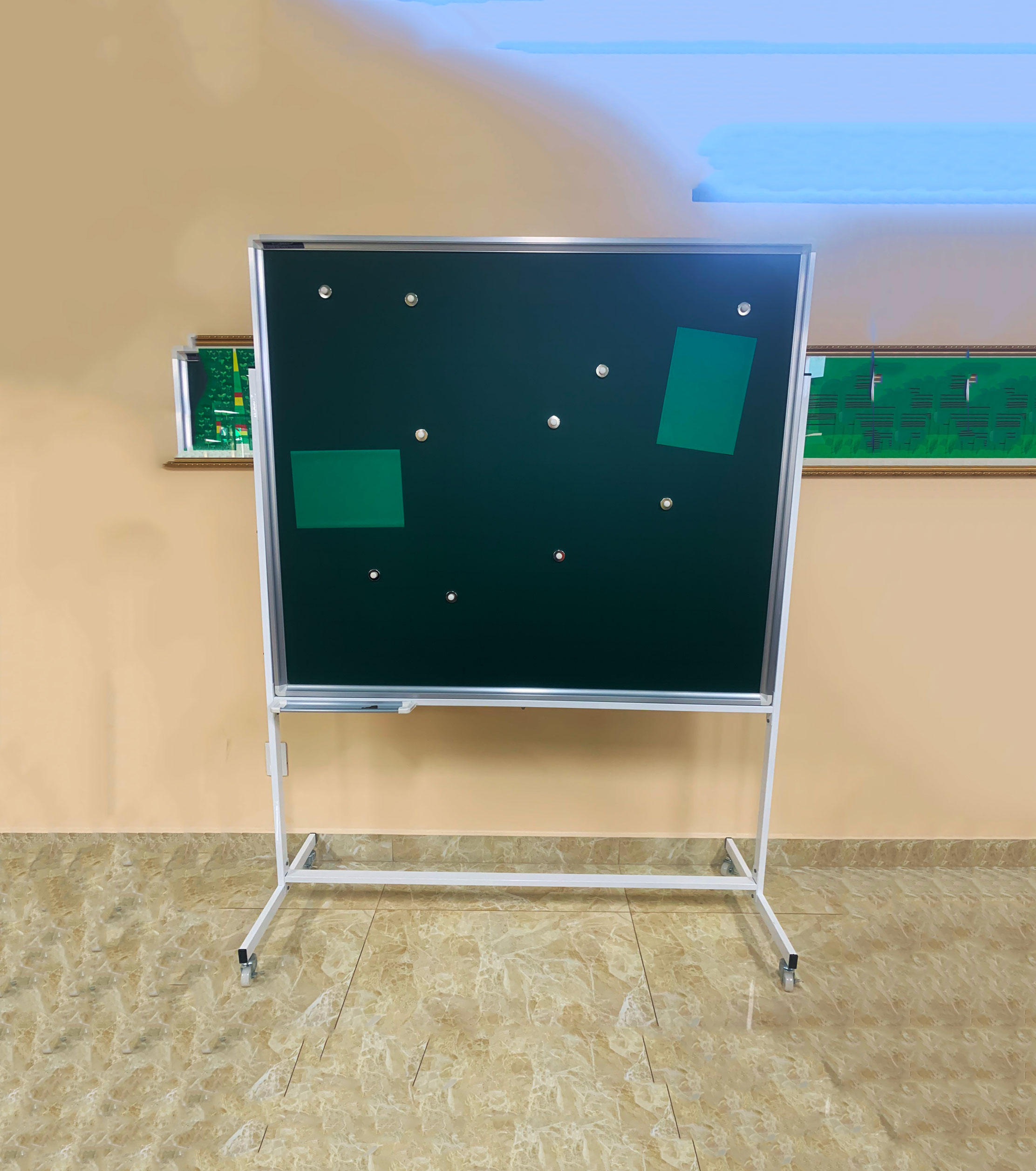 – Mặt bảng di động dạy học: Mặt bảng từ màu xanh nhập khẩu từ DongBu – Hàn Quốc. Qua 17 lớp sơn trên nền màu xanh chống lóa, chống mài mòn, trơn trượt, mặt bảng dày 3dem.