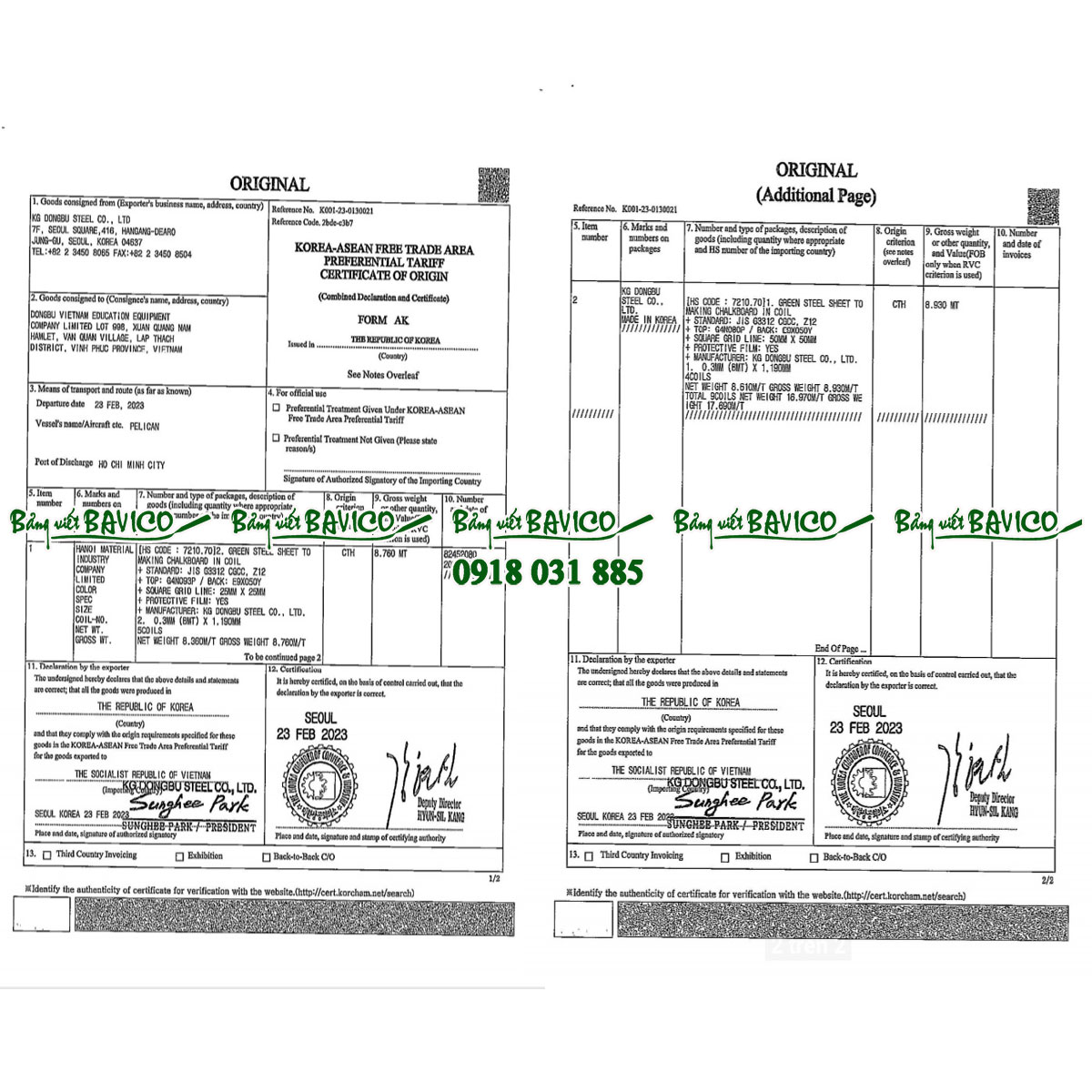 CO-CQ CHỨNG NHẬN NHẬP KHẨU MẶT BẢNG VIẾT BÚT LÔNG TỪ HÀN QUỐC