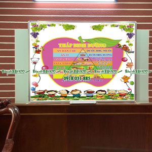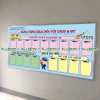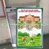 2/ Tấm lót bảng biểu in pp trường học được lót bằng ván MDF 4ly của Thái Lan, mặt sau có ép giấy vân gỗ chống ẩm, chống cong mo.