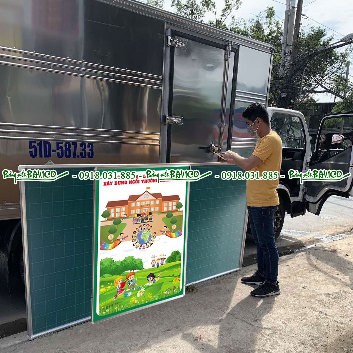 3/ Khung bo bảng Trường học thiết kế theo yêu cầu: bằng nhôm chuyên dụng trắng bóng.