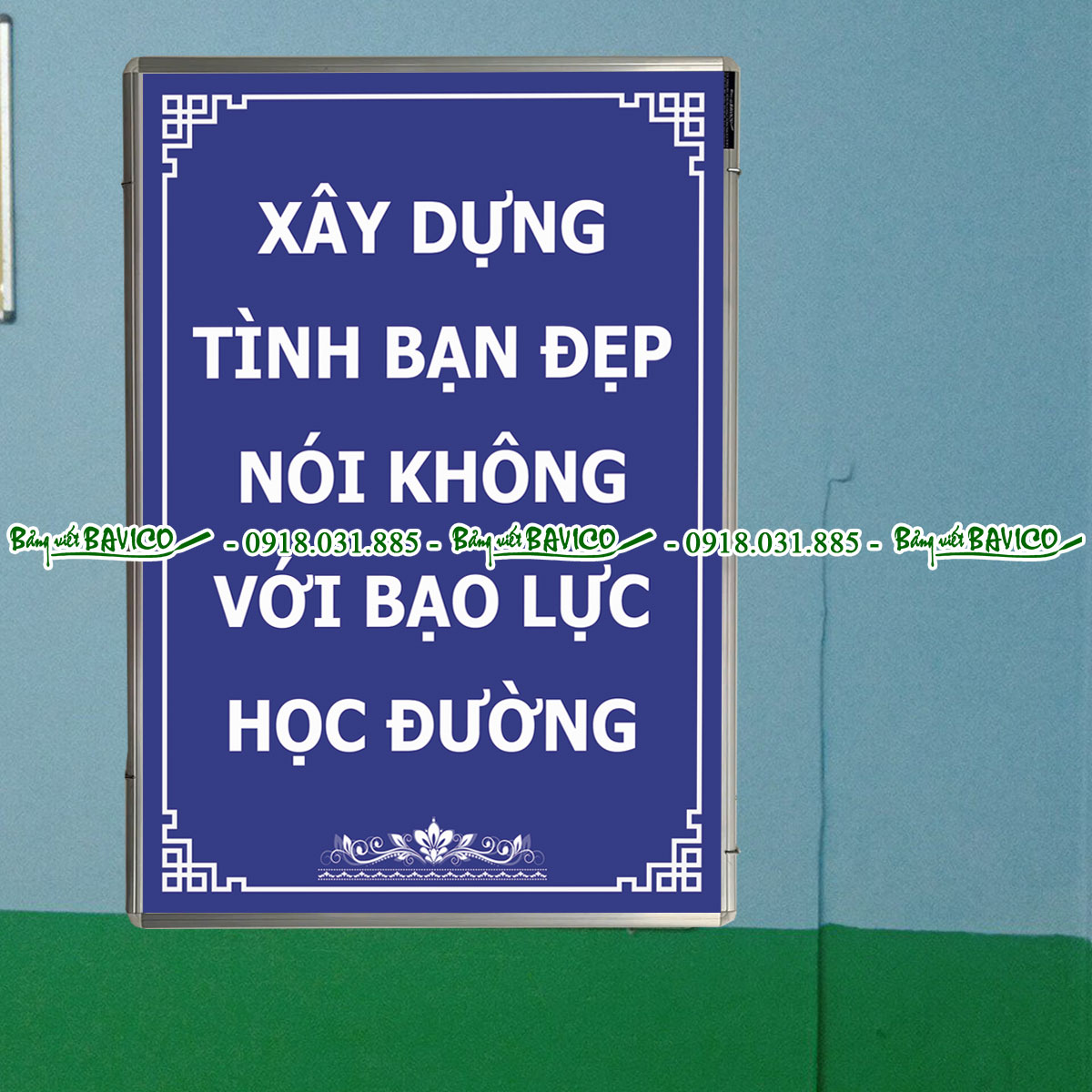 Bảng nói không với bạo lực học đường treo tường là bảng chuyên dùng cho Trường học, sản phẩm được thiết kế bởi Công ty Bavico doanh nghiệp đi đầu trong lĩnh vực sản xuất bảng trên thị trường hơn 20 năm.