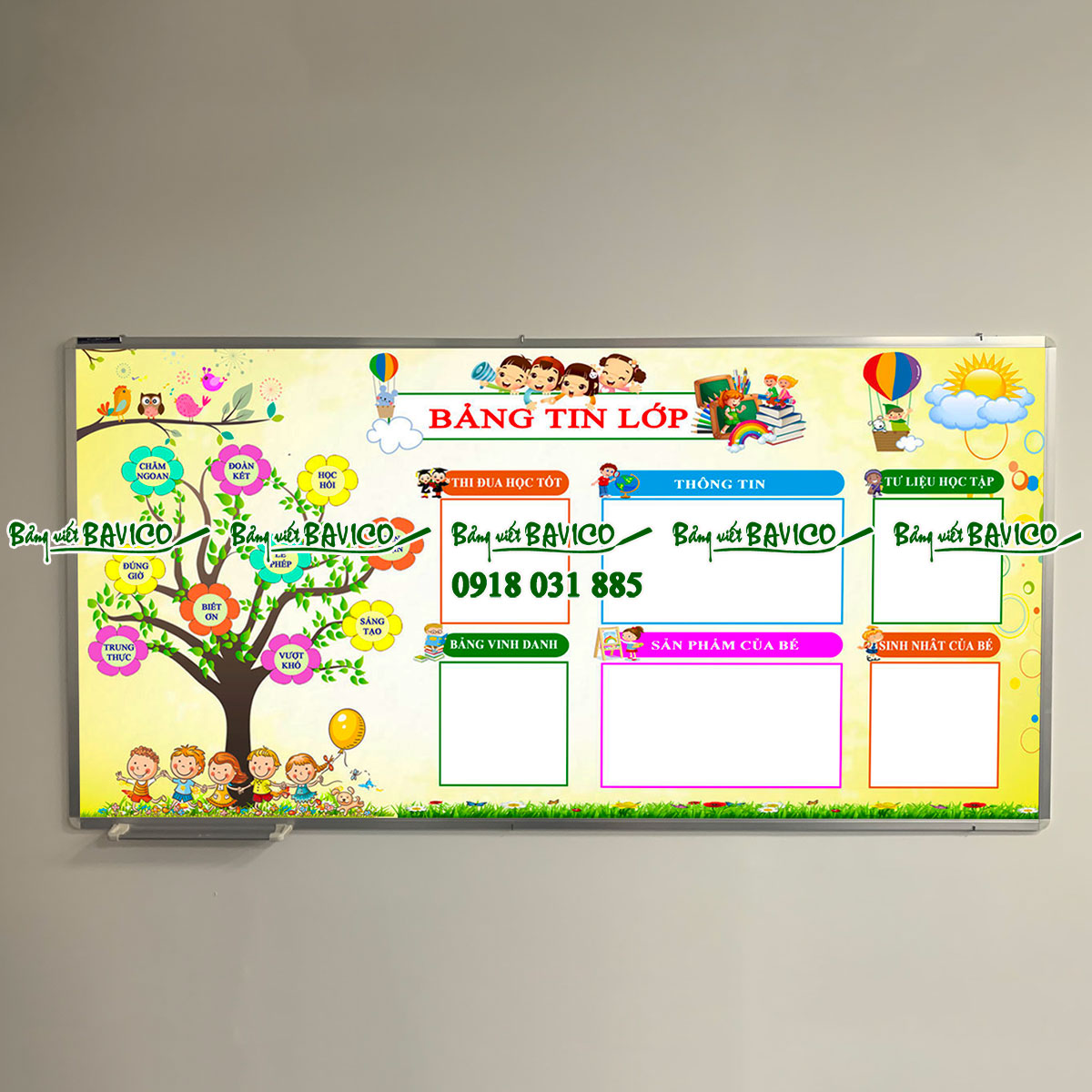 Bảng tin lớp học dành cho mầm non và tiểu học là 1 tấm bảng treo tường có độ bền cao so với những tấm decal thường, bảng tin lớp được sản xuất tại nhà máy bảng viết BAVICO không qua trung gian nên giá thành rẻ nhất khi đến tay quý khách hàng.