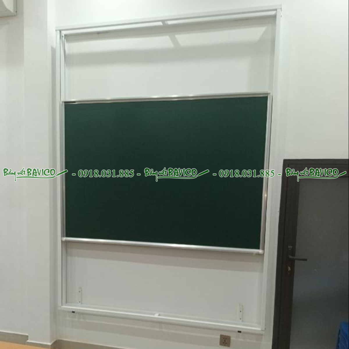 Bảng trượt đứng viết phấn từ Hàn Quốc được trượt lên xuống bằng hệ thống thanh trượt, bảng có thể dừng lại ở tất cả các vị trí người dùng muốn.