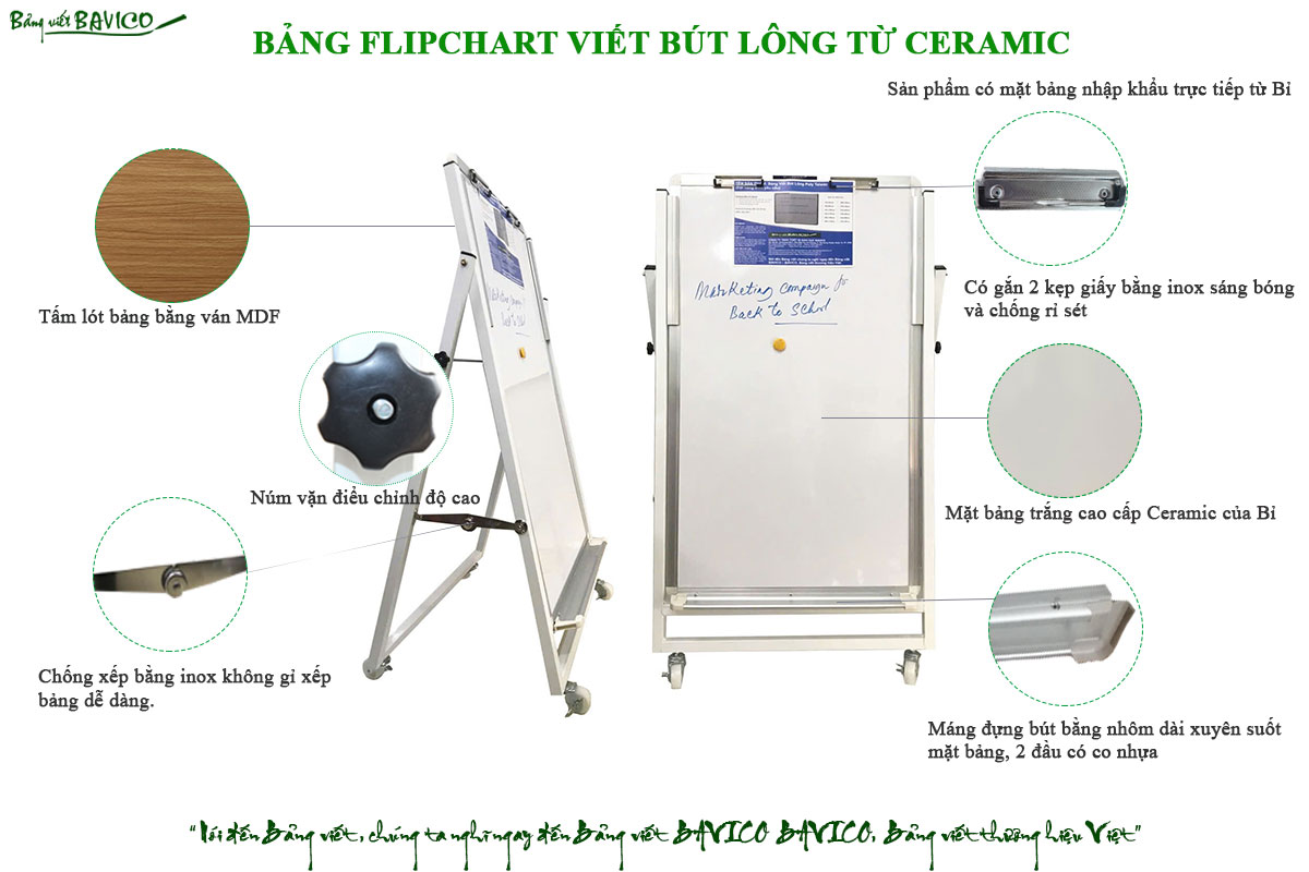 Bảng từ trắng Ceramic viết bút lông có chân xếp gọn với mặt bảng viết bút lông êm chống cháy, chống lóa chống hư hại bởi hóa chất, độ bền mặt bảng trên 40 năm, sản phẩm bảng cao cấp của thương hệu bảng viết BA VI CO – 22 năm sản xuất bảng.