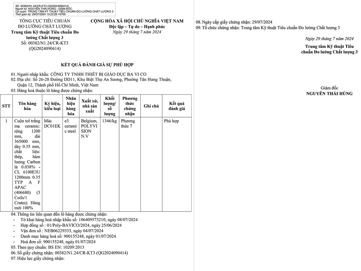 CO-CQ MẶT BẢNG TỪ TRẮNG CERAMIC NHẬP KHẨU BỈ