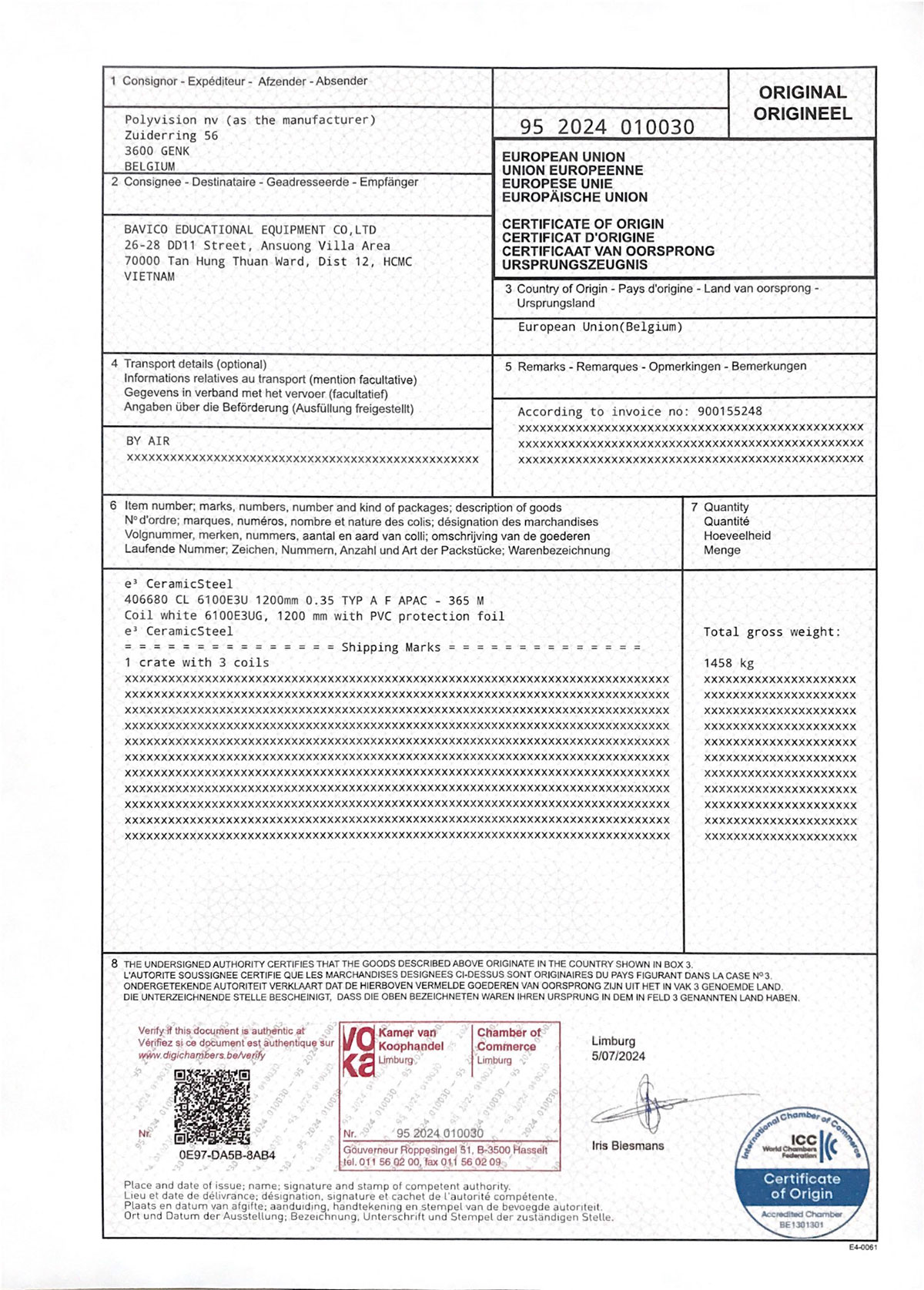 CHỨNG NHẬN NHÀ PHÂN PHỐI CỦA POLY VISION TẠI VIỆT NAM