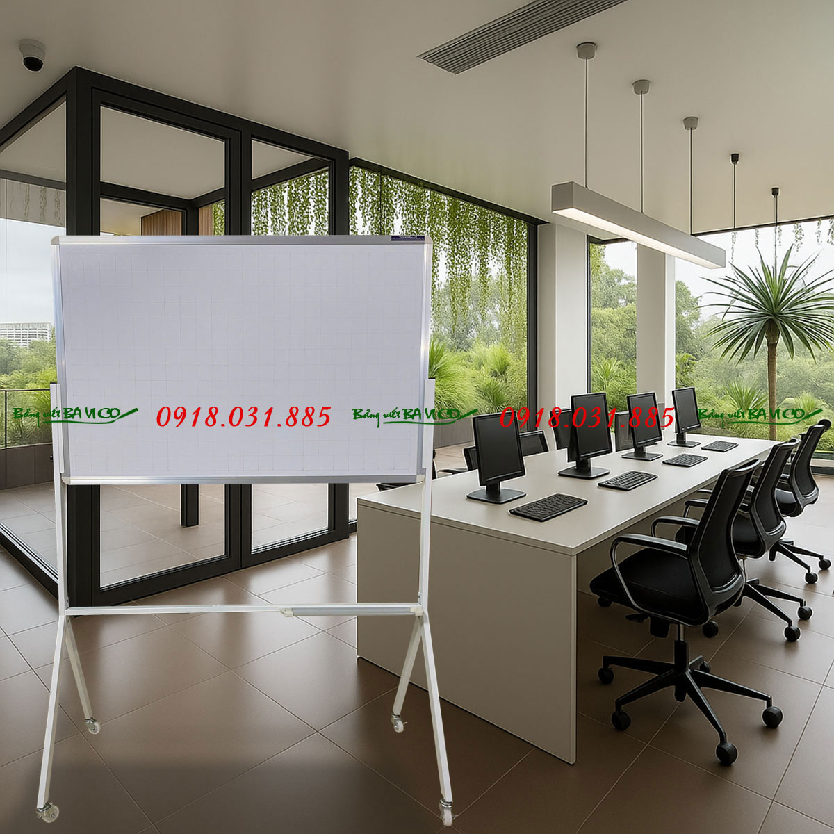 Bảng từ trắng Greenlam với chân chữ Y di động mang đến sự tiện lợi tối đa cho công việc giảng dạy và thuyết trình. Bề mặt bảng cao cấp, viết mượt – xóa dễ, từ tính mạnh mẽ, phù hợp sử dụng tại văn phòng, lớp học hoặc hội thảo.