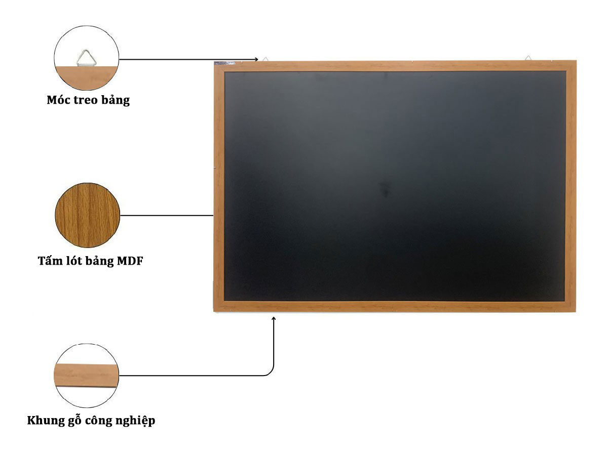 Bằng ván MDF 4ly của Thái Lan mặt sau có ép giấy vân gỗ chống ẩm và đảm bảo bảng viết không bị rung hay cong mo