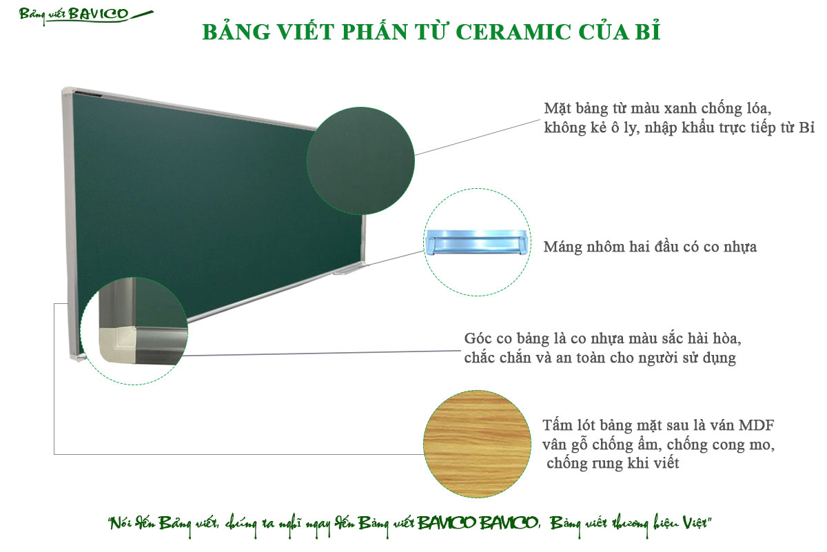 Bảng từ Ceramic viết phấn được công ty BAVICO nhập khẩu trực tiếp từ Bỉ và được sản xuất theo tiêu chuẩn đảm bảo bảng viết êm không bị rung hay cong mo, bảng treo tường chắc chắn và an toàn.