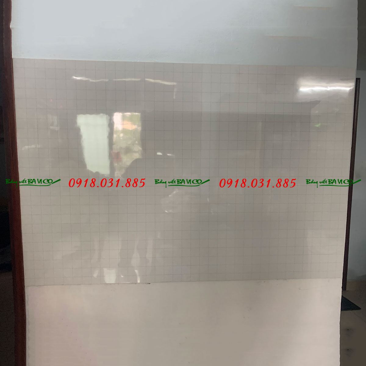 Bề mặt: màu trắng chống lóa, chống mài mòn, trơn trượt, viết êm, lau dễ dàng mà không để lại dấu, dày 3 dem, có từ tính, có ô ly vuông chìm 5 cm.