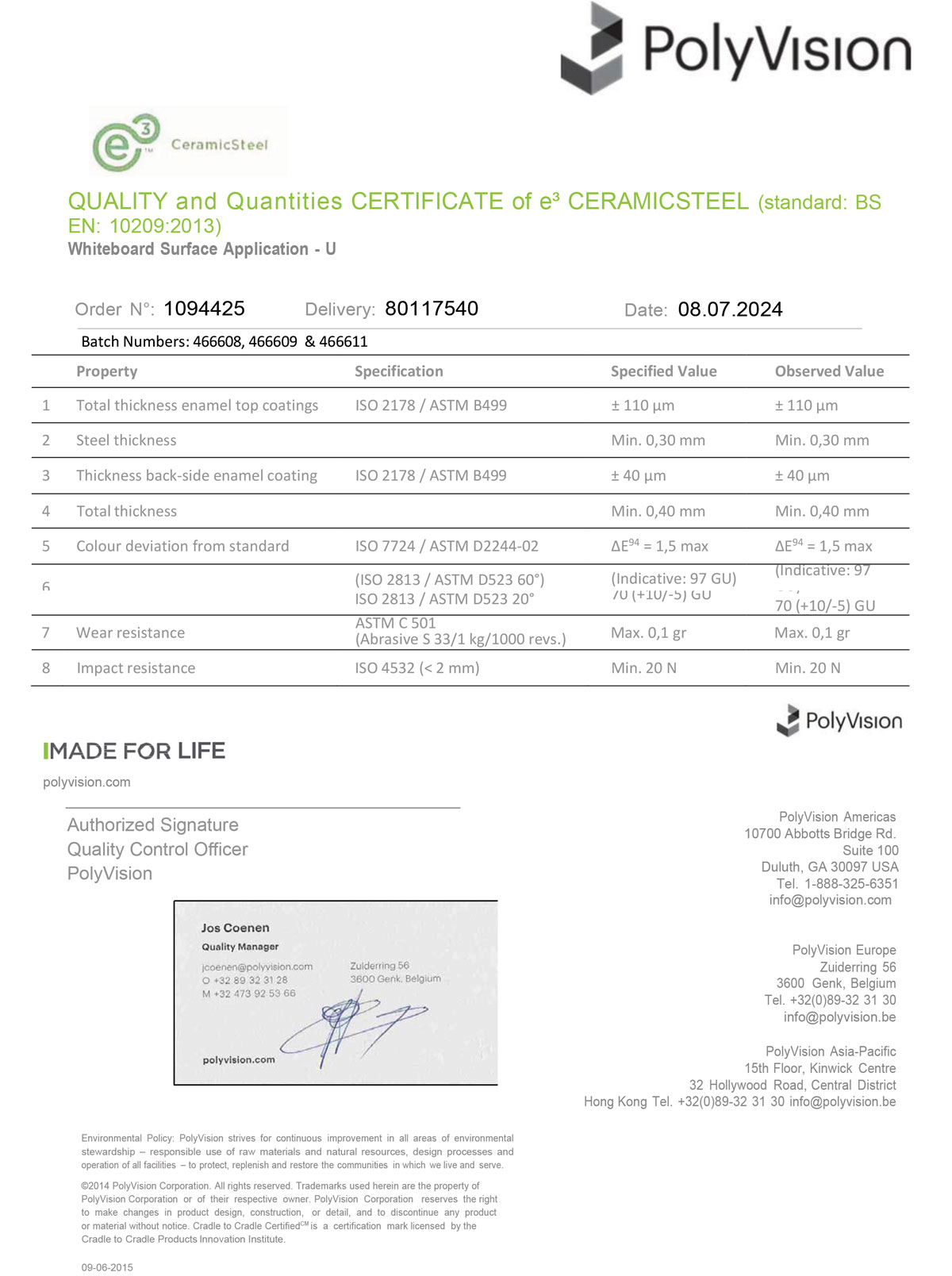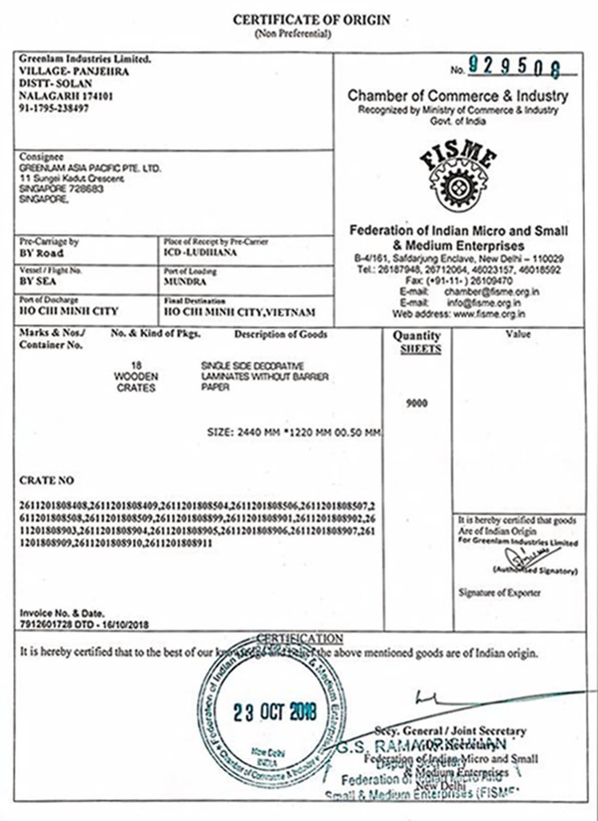 Giấy chứng nhận CO – CQ mặt bảng trắng Greenlam cao cấp
