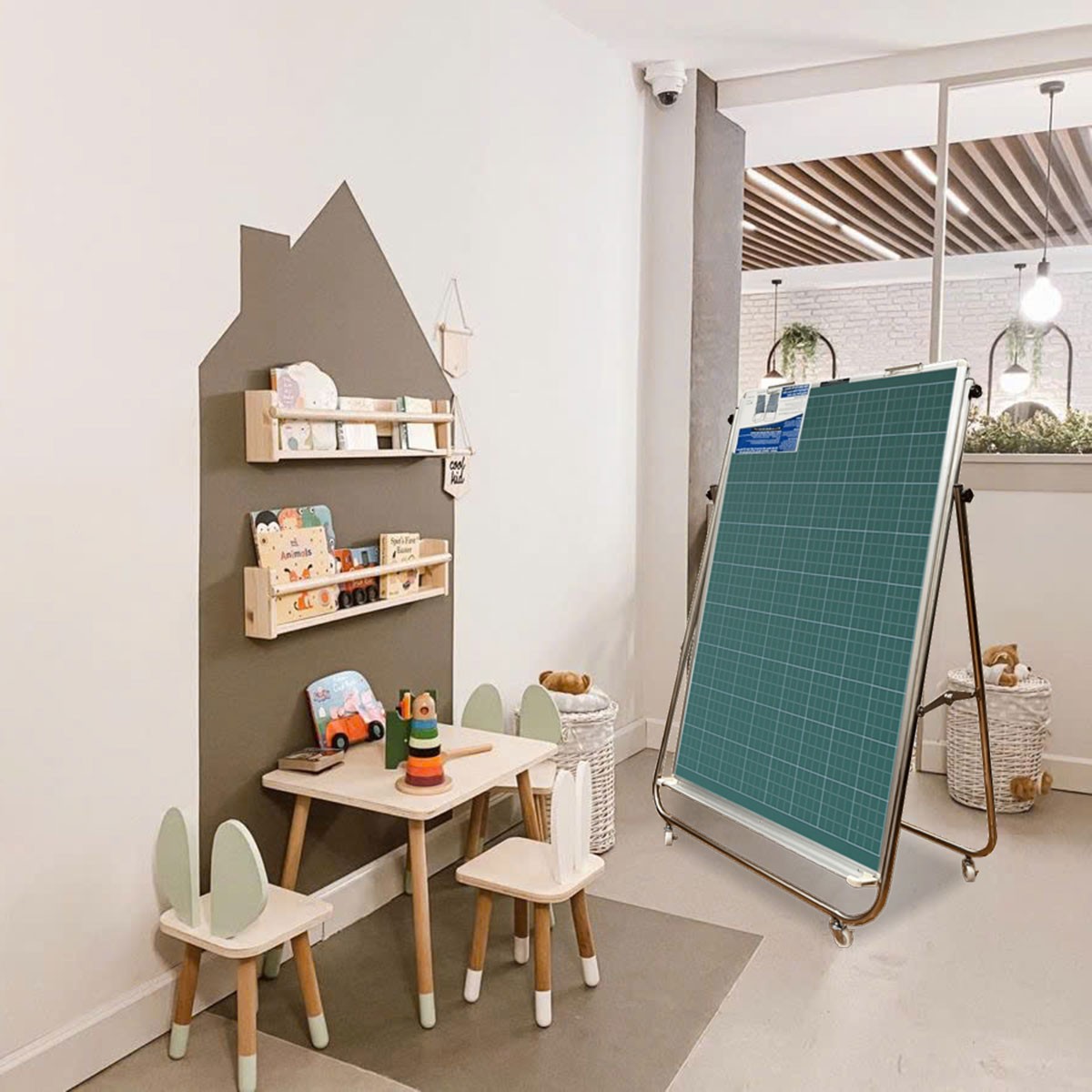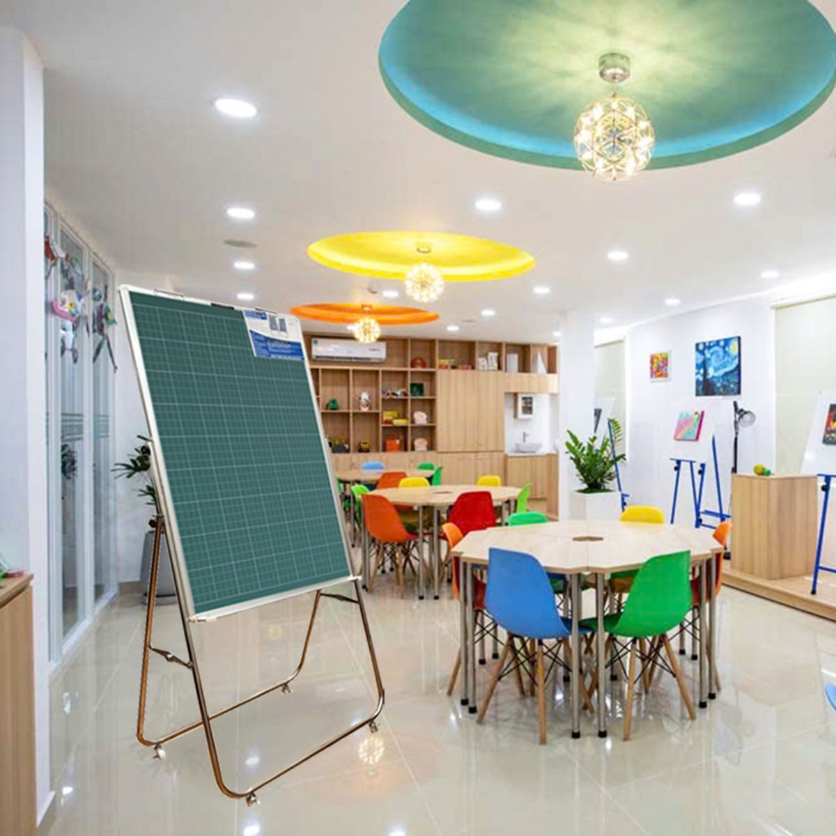 Bảng Flipchart chân inox viết bút lông từ Hàn Quốc với mặt bảng được nhập khẩu từ Hàn Quốc và được in lụa đường ô ly tập giúp bé luyện chữ dễ dàng.